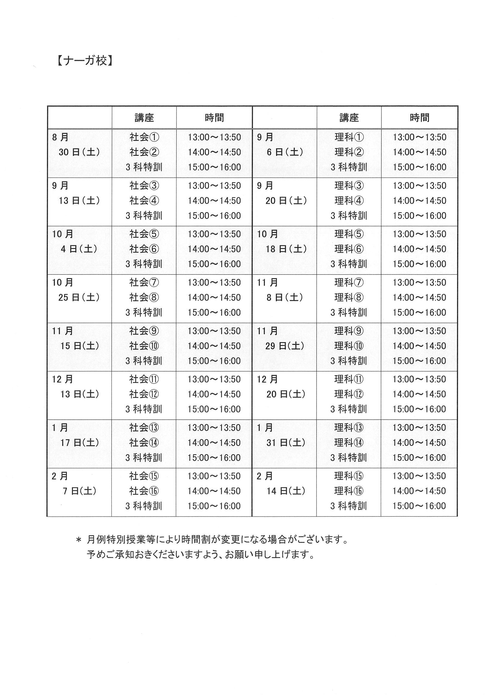 【2025年度5科特訓ステップアップ講座スケジュール】